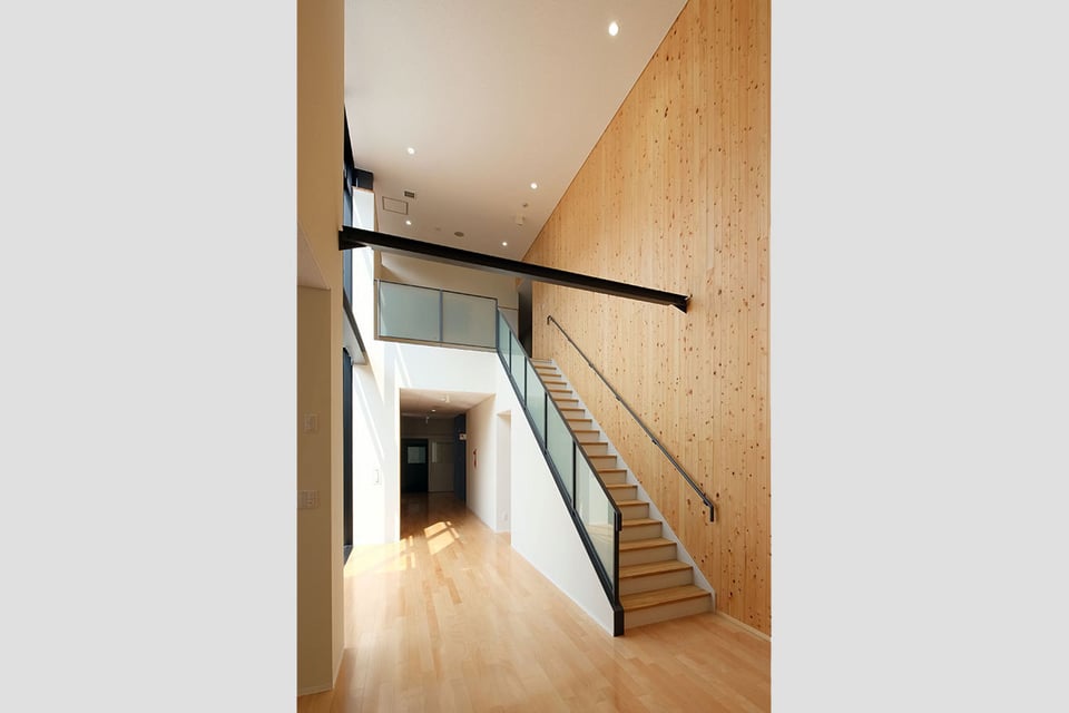 建物は、小さな勾配屋根の集まりで構成し、周辺の戸建住宅や山々との調和を図るとともに、一日を過ごす利用者にとって「施設」でなく「まち」の中で住まい、働いていると感じられる環境を創り出す。